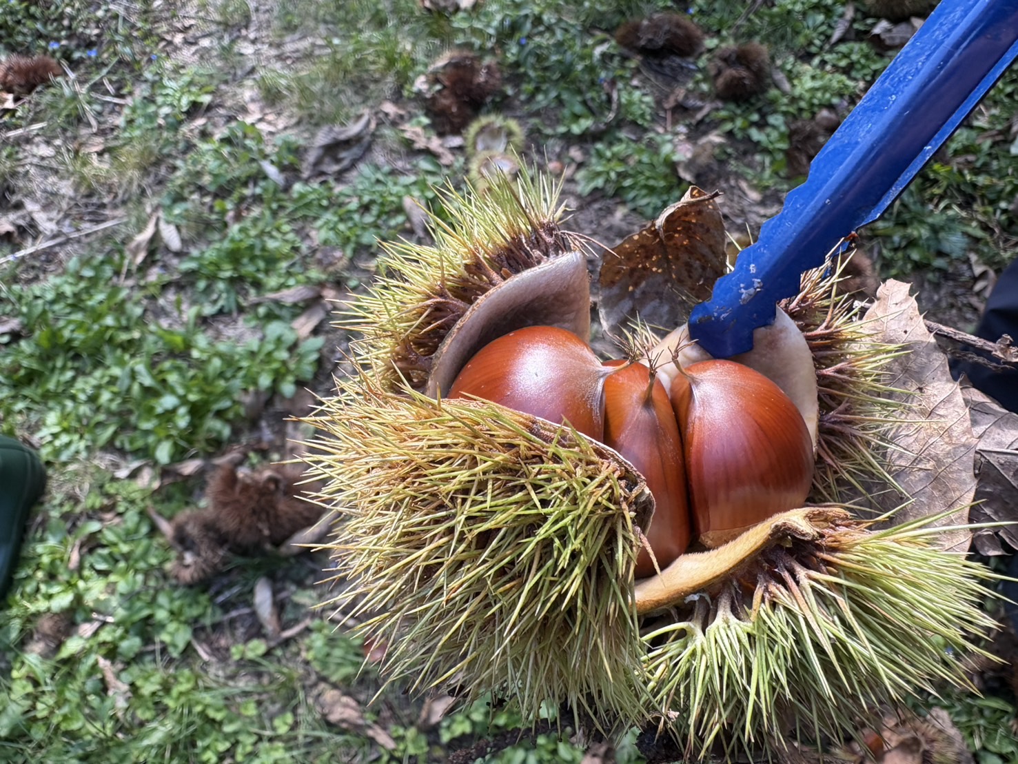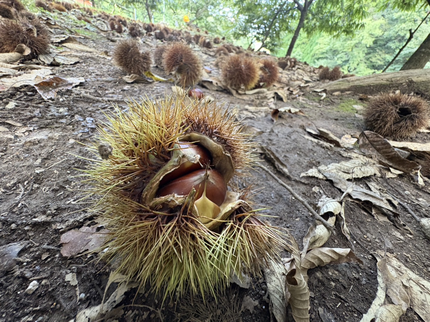 | 撮影者コメント | 島根県雲南市にある「波多観光栗園」へ栗拾いに行ってきました。 園内に入ると、足元にはイガから顔をのぞかせる大きな栗がたくさん! 自然の中で土の香りを感じながら、夢中になって栗を拾いました。 イガを割るとツヤツヤした栗が出てきて、まるで宝探しをしているような感覚。 子どもから大人まで楽しめる体験で、秋ならではの思い出作りにぴったりです。 拾った栗はその場で持ち帰ることができ、栗ご飯や焼き栗にして秋の味覚を堪能しました。 自然に囲まれながら過ごすひとときは、とても癒されました。 |