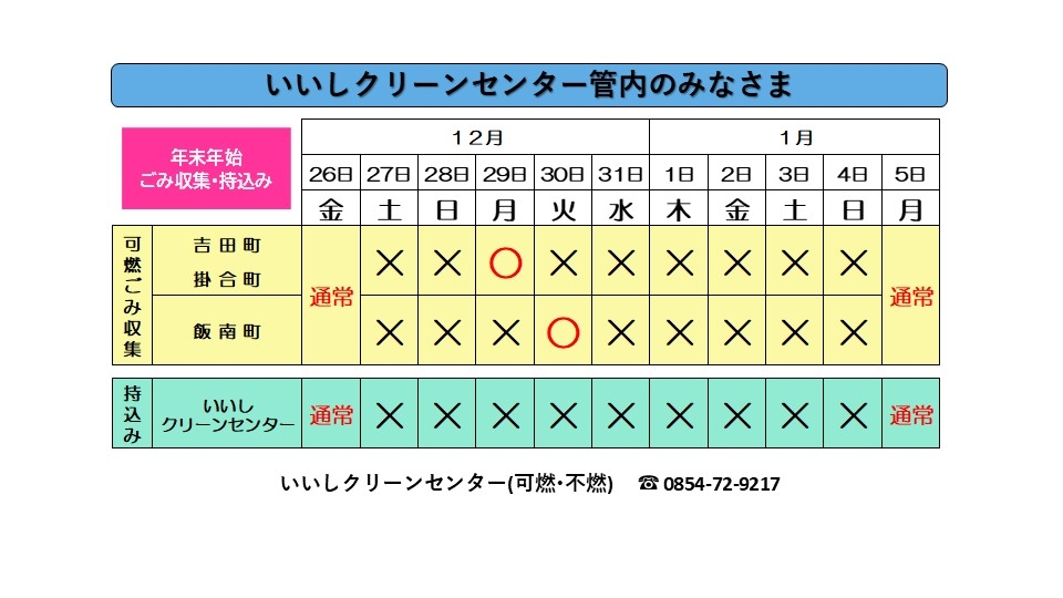 ≪年末年始≫ごみ収集およびごみの持込みについて(吉田町・掛合町・飯南町)